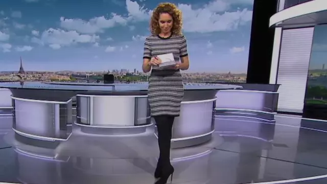 Dress Slim Fit mesh and fabric striped super stretch of Marie-Sophie Lacarrau in the Journal of 13 hours the 03.02.2020