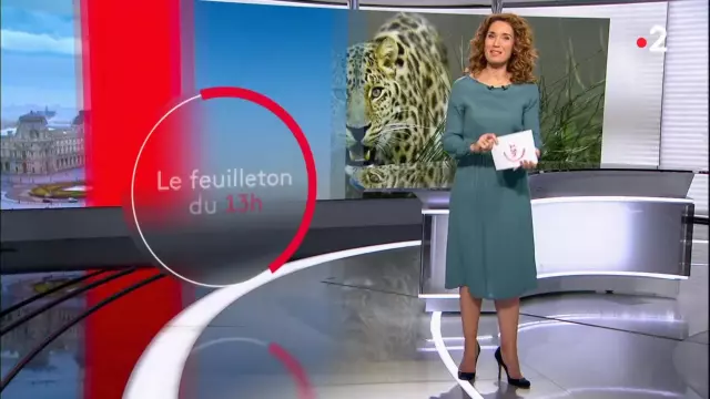 The dress vert d'eau Marie-Sophie Lacarrau in the Journal of 13 hours from France 2 31 01 2020