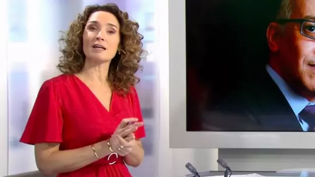 The dress in silk jacquard coral Marie-Sophie Lacarrau in the Journal of 13 hours the 06.02.2020