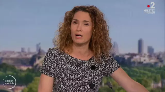 The short dress tweed cotton blend with crew neck boat Marie-Sophie Lacarrau in the Journal of 13 hours the 02.04.2020