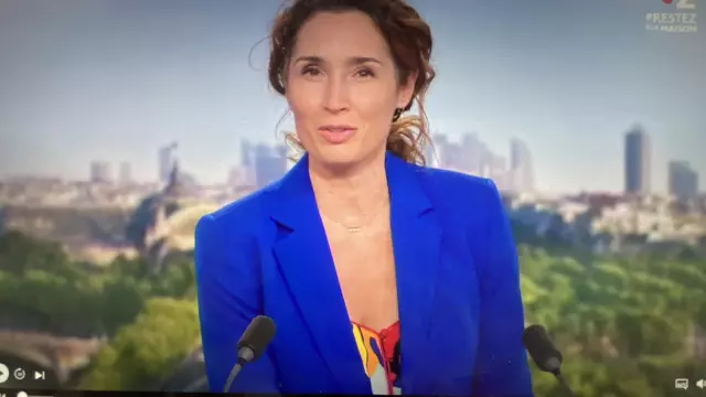 Jacket blazer blue range by Marie-Sophie Lacarrau the Newspaper 13 hours on France 2