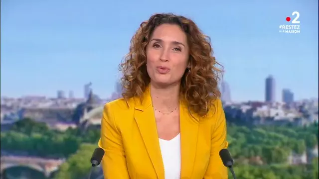 The jacket blazer yellow of Marie-Sophie Lacarrau in the Journal of 13 hours the 05.05.2020