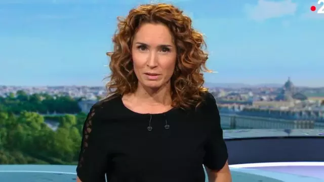 The dress dance embroidered details on the sleeves of Marie-Sophie Lacarrau in the journal of 13h 02.12.2019