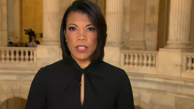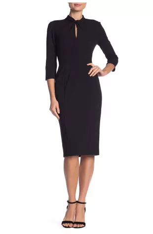Donna Morgan Crepe Three-Quarter Sleeve Sheath Dress worn by Nikole Killion as seen in CBS Mornings on May 3, 2023