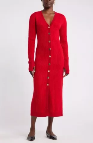 Nordstrom x Harlem's Fashion Row Harbison Long Sleeve Rib Midi Sweater Dress worn by Gayle King as seen in CBS Mornings on November 11, 2025