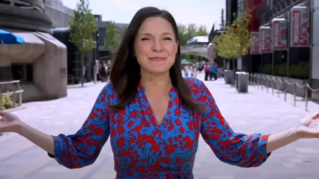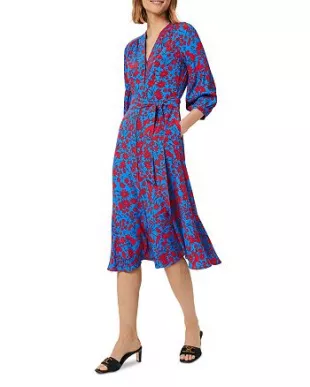Hobbs Carla Midi Dress worn by Maggie Rulli as seen in Good Morning America Weekend on 13 July 2022