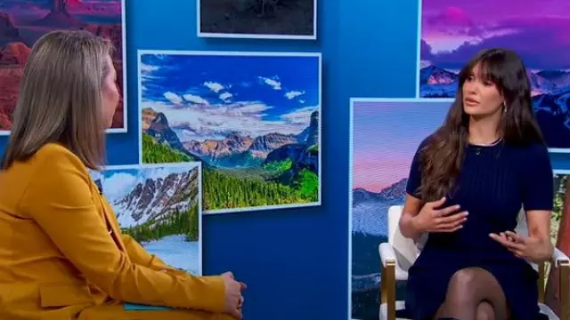 Michael Kors Collection Ribbed Cashmere Mini Dress worn by Nina Dobrev as seen in Good Morning America on March 18, 2025
