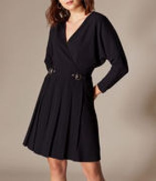 The wrap dress pleated skirt black Karen Millen's Mary-Sophie Lacarrau in The journal of 13H on france 2 on the 30.01.2019