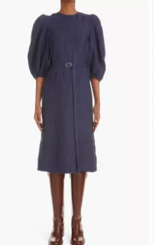Chloe Balloon Sleeve Belted Linen Drill Dress worn by Kelly Ripa as seen in LIVE with Kelly and Mark on September 24, 2025