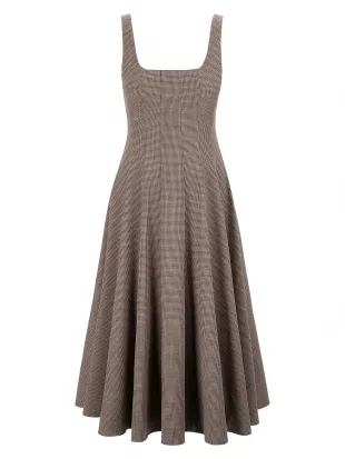 Staud Wells Houndstooth Fit & Flare Midi Dress worn by Rachel Scott as seen in LIVE with Kelly and Mark on September 26, 2025