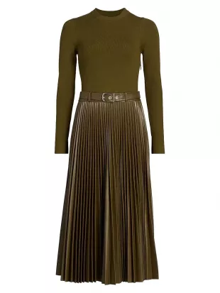 Simkhai Abilene Mixed-Media Midi-Dress worn by Kristen Bell as seen in The Kelly Clarkson Show on October 23, 2025