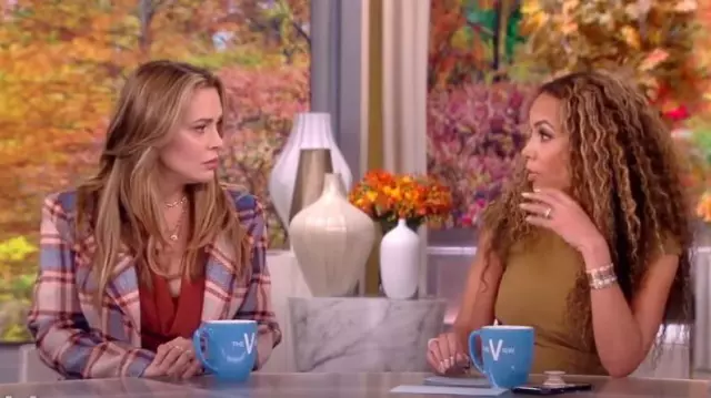 Smythe Patch Pocket Birkin Apricot Plaid Blazer worn by Alyssa Milano as seen in The View on November 29, 2022