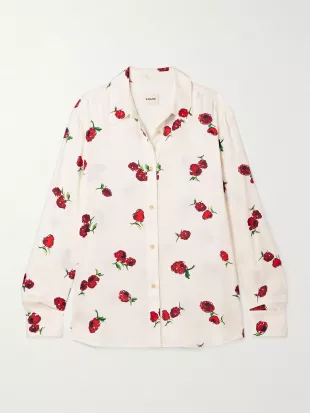 Khaite Argo Printed Silk-twill Shirt worn by Gretta Monahan as seen in The View on November 14, 2025