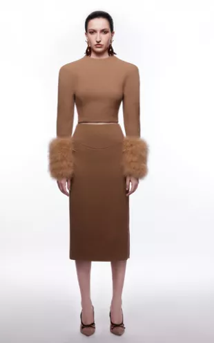 Harithand Lizelot Crepe Pencil Skirt worn by Jennifer Lopez as seen in Today with Jenna & Friends on October 6, 2025