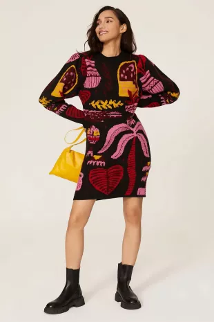 Farm Rio Black Tropical Magic Sweater Dress worn by Sheinelle Jones as seen in Today on December 8, 2025
