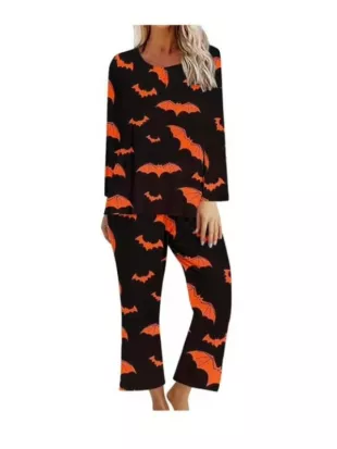 90 Day Fiance Pillow Talk Black & Orange Bat Print Pajamas