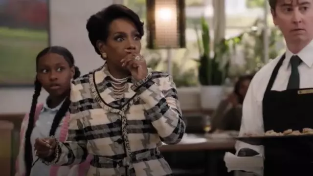 St John Collection Houndstooth Tweed Jacket worn by Barbara Howard (Sheryl Lee Ralph) as seen in Abbott Elementary (S04E12)