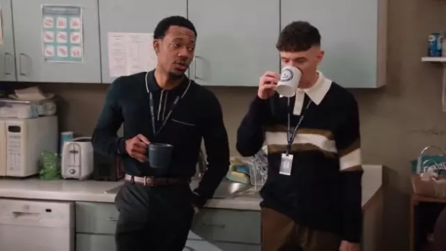 Paisley & Gray Men's Tipped Long-Sleeve Polo Shirt worn by Gregory Eddie (Tyler James Williams) as seen in Abbott Elementary (S04E15)