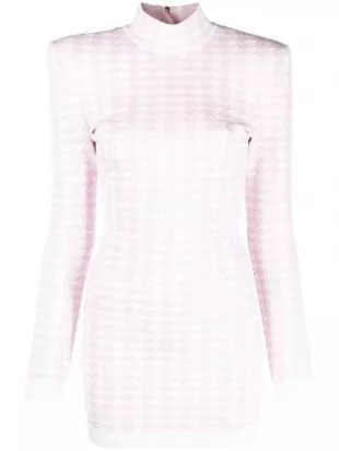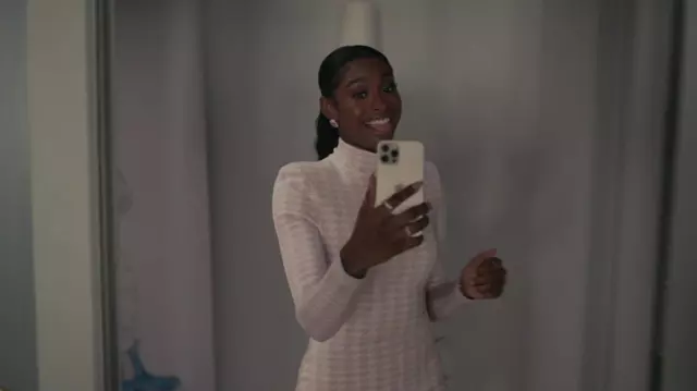 Balmain houndstooth knitted white and pink minidress worn by Hilary Banks (Coco Jones) as seen in Bel-Air TV series (S01E01)
