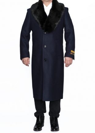MENS ALBERTO NARDONI couleur marine avec col en fourrure amovible-65% laine fait manteau topcoat veste pleine longueur