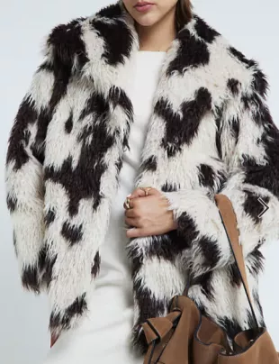 River Island Cow Print Faux Fur Coat worn by Mary "Sugar" Jones (Joanna Higson) as seen in Brassic (S07E04)