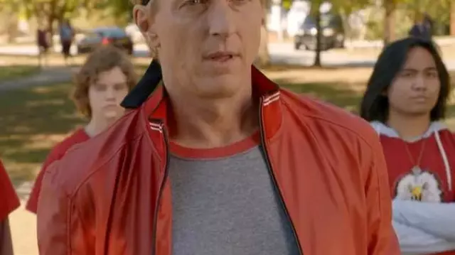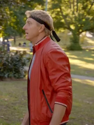 Cobra Kai William Zabka Red Bomber Jacket worn by Johnny Lawrence (William Zabka) in Cobra Kai