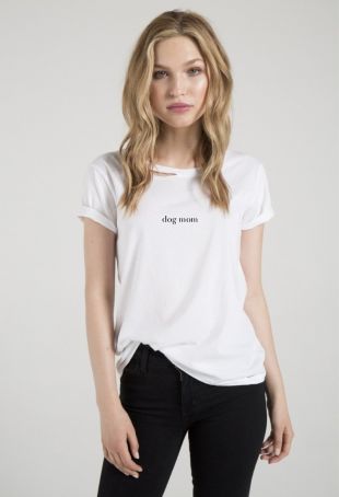 n:Philanthropy Harlow Dog Mom White Tee worn by Terra Newell (Julia Garner) as seen in Dirty John S01E01