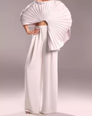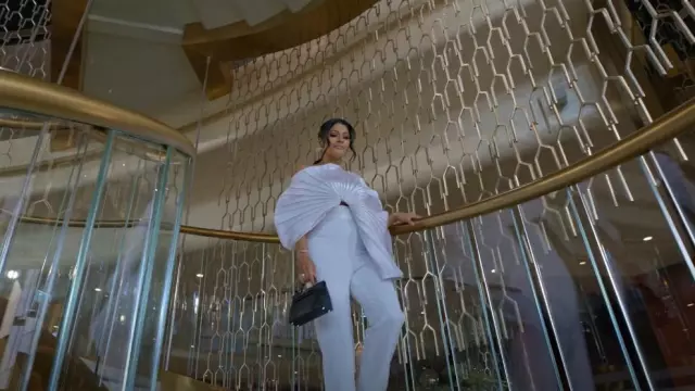 Gaby Charbachy Flared White Crepe Pants worn by Farhana Bodi as seen in Dubai Bling (S02E03)