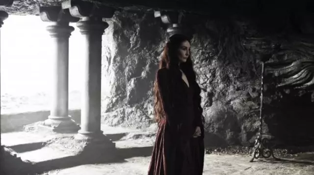 The suit bordeaux de Mélisandre (Carice van Houten) in Game Of Thrones S06E01