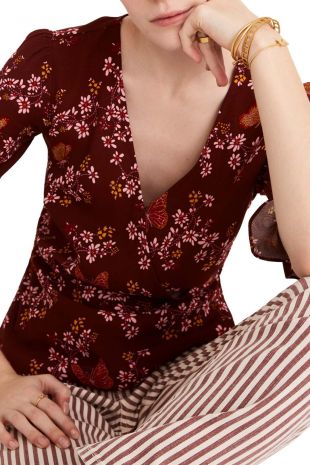 Madewell Tie-Sleeve Wrap Top in Butterfly Sanctuary worn by Elizabeth Webber (Rebecca Herbst) as seen in General Hospital July 17, 2019