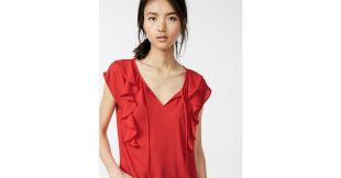 Express Tie Neck Ruffle Front Cap Sleeve Blouse worn by Elizabeth Webber (Rebecca Herbst) as seen in General Hospital August 2, 2019