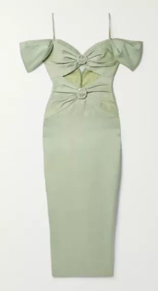 Rasario The-Shoulder Embellished Lace-Paneled Satin-Crepe Midi Dress worn by Monet de Haan (Savannah Lee Smith) as seen in Gossip Girl (S02E06)