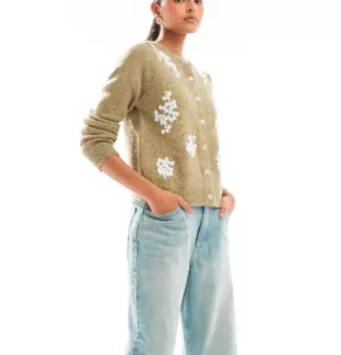 Cotton:On Lux Crew Button Cardigan In Khaki worn by Amelia Shepherd (Caterina Scorsone) as seen in Grey's Anatomy (S21E11)