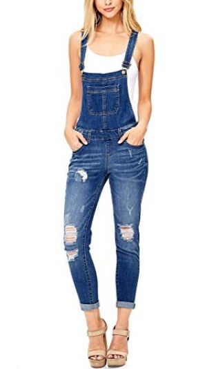Misassy Womens Ripped Denim Bib Overall Jumpsuit Jeans Skinny Distressed Long Rompers