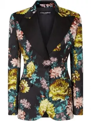 Dolce & Gabbana Floral Jacquard Detail Blazer worn by Anna Delvey (Julia Garner) as seen in Inventing Anna (S01E01)