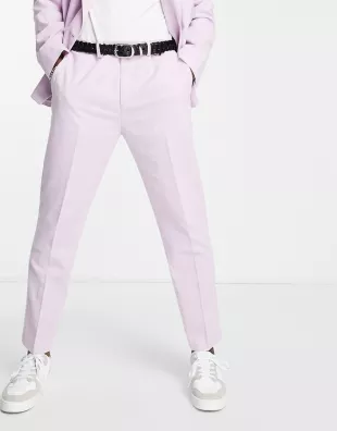 Topman Slim Suit Pants in Lilac Crepe worn by Nicholas (Joel Kim Booster) as seen in Loot (S03E09)