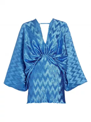 L'Idée Les Éléments Riviera Chevron Pleated Satin Minidress worn by Megan Walerius as seen in Love Is Blind (S09E08)