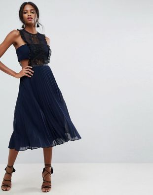 self portrait Navy / Grey Sleeveless Lace Pleated Chiffon Mid length Cocktail Dress Size 0 (XS)