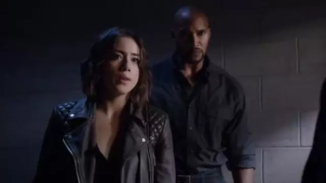 All Saints Cropped Cargo Leather Biker Jacket in Khaki worn by Daisy 'Skye' Johnson (Chloe Bennet) in Marvel's Agents of S.H.I.E.L.D. (S03E04)