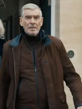 MobLand 2025 Pierce Brosnan Brown Jacket worn by Conrad Harrigan (Pierce Brosnan) as seen in MobLand (S01)