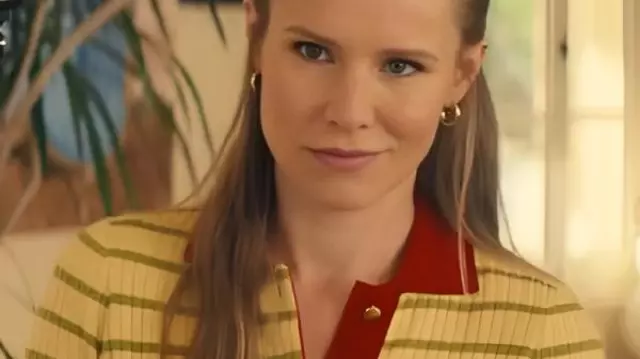 Kristen Bell Nobody Wants This S02 Yellow Striped Top worn by Joanne (Kristen Bell) as seen in Nobody Wants This (S02E01)