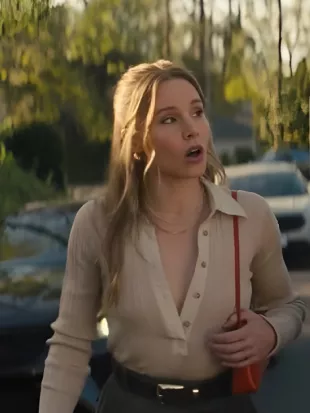 Nobody Wants This S2 Kristen Bell Polo Ribbed Top worn by Joanne (Kristen Bell) as seen in Nobody Wants This (S02E01)