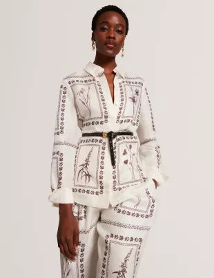 Ted Baker Simcoa Panel Print Silk Linen Longline Shirt worn by Loretta Durkin (Meryl Streep) as seen in Only Murders in the Building (S05E06)