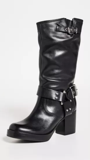 Schutz Kiara 76MM Leather Zip Up Block Heel Boots worn by Mabel Mora (Selena Gomez) as seen in Only Murders in the Building (S05E07)