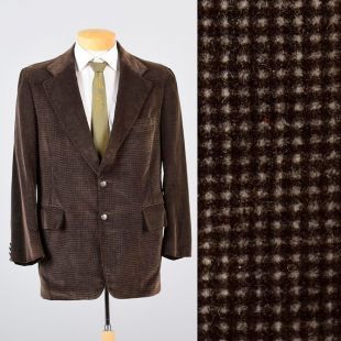 Mens Vintage des années 70 Bill Blass Brown Tan vérifier veste créateur Blazer en velours velours 42 42L 43