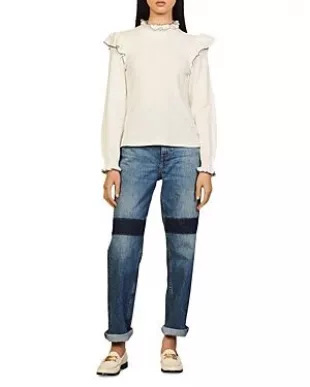 Sandro Viviane Ruffled Sweater worn by Amy (Eliza Coupe) as seen in Pivoting (S01E10)