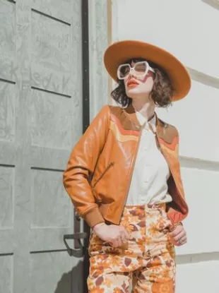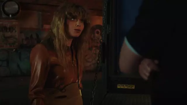Etsy Classic Rock Couture Cosmic Cowboy Bomber Jacket worn by Charlie Cale (Natasha Lyonne) as seen in Poker Face (S01E04)
