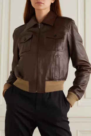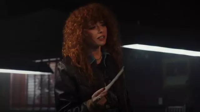 Saint Laurent Leather Bomber Jacket worn by Charlie Cale (Natasha Lyonne) as seen in Poker Face (S02E08)