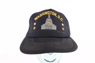 Vintage 80s Distressed Washington DC Spell Out Trucker Hat worn by Charlie Cale (Natasha Lyonne) as seen in Poker Face (S02E10)