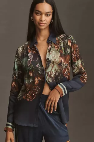 Conditions Apply Blooming Long-Sleeve Collared Blouse worn by Brandy Michaels (Essence Atkins) as seen in Reasonable Doubt (S03E10)